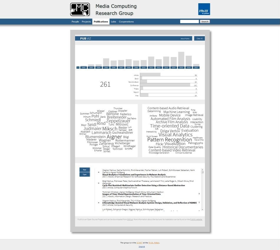 Screenshot of PubViz as integrated into the website of the Media Computing Research Group.